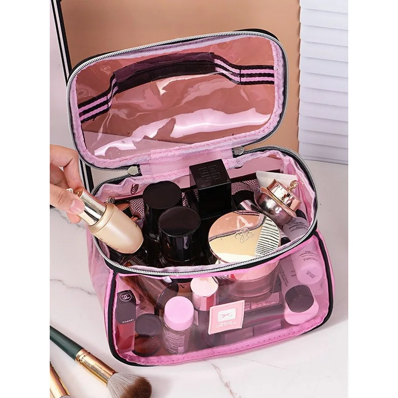تتميز حقيبة الغسيل الشفافة الجديدة المصنوعة من مادة PVC بالهلام بسعة كبيرة، وهي مثالية لتخزين جميع ضرورياتك اليومية.
