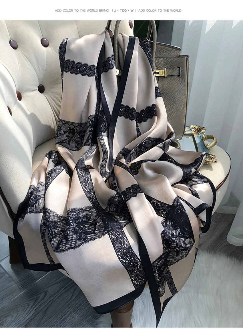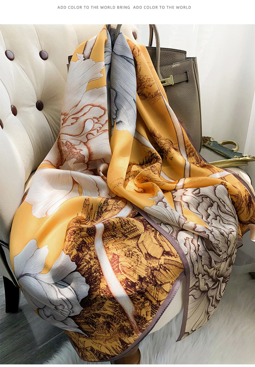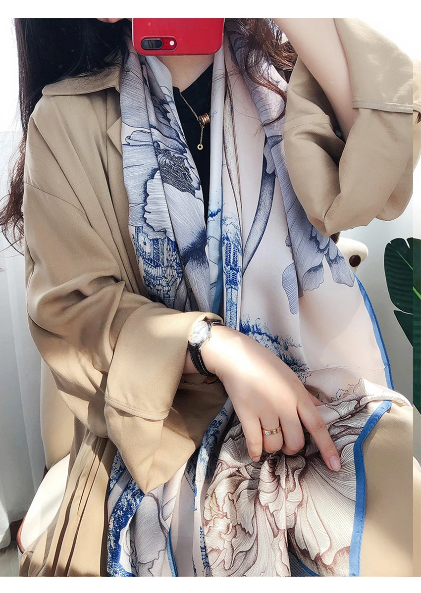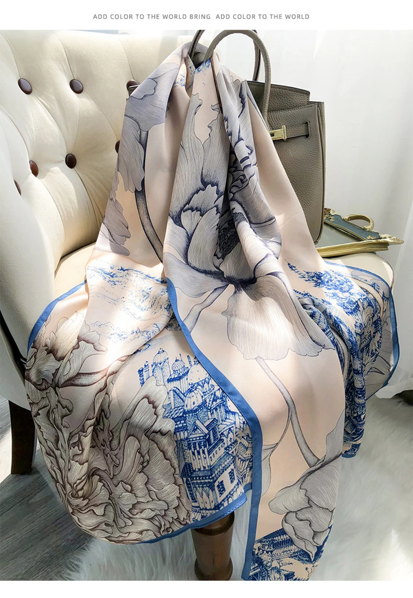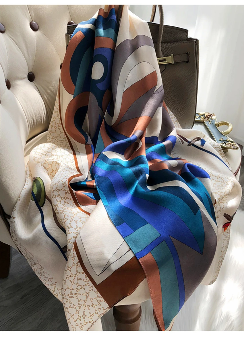 شالات نسائية من الحرير الخالص، مطبوع، تصميم فاخر، طويل الحجم