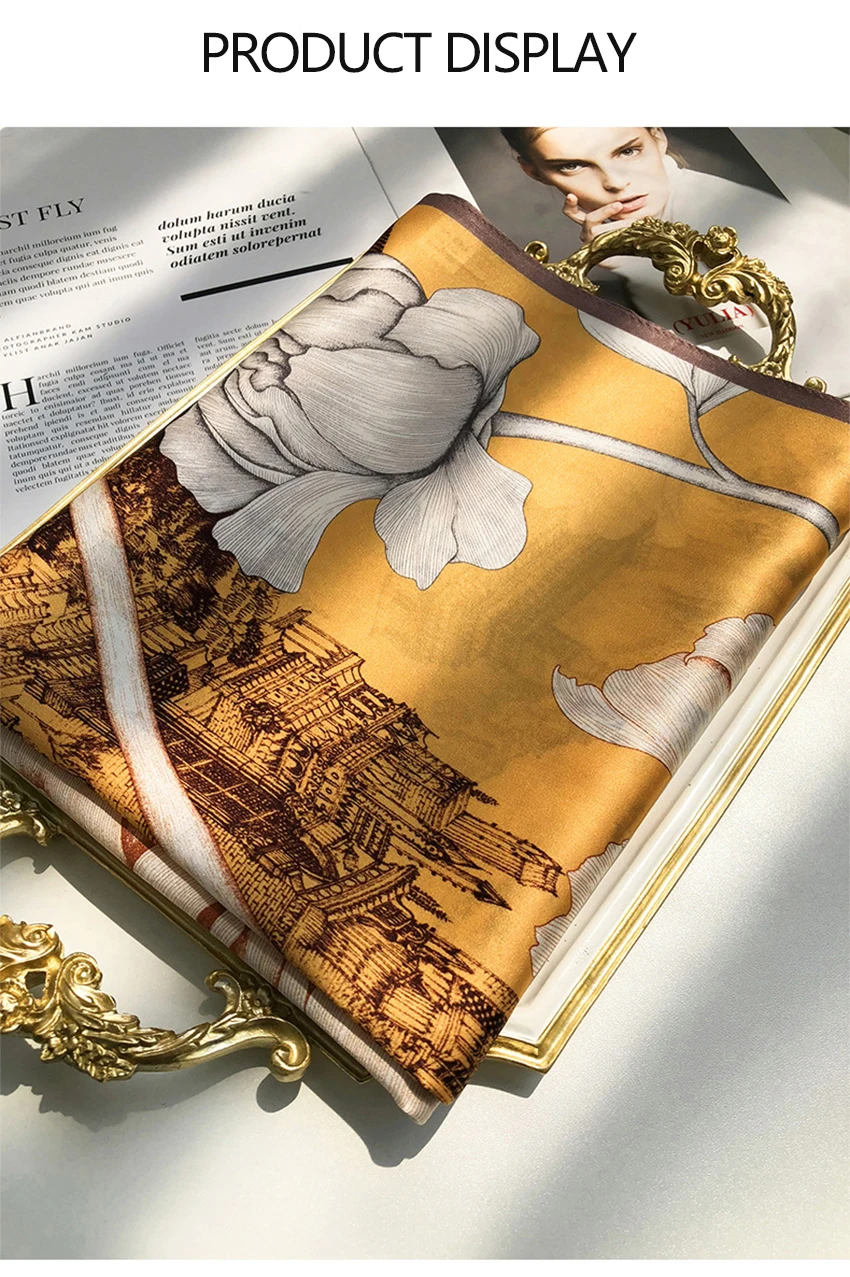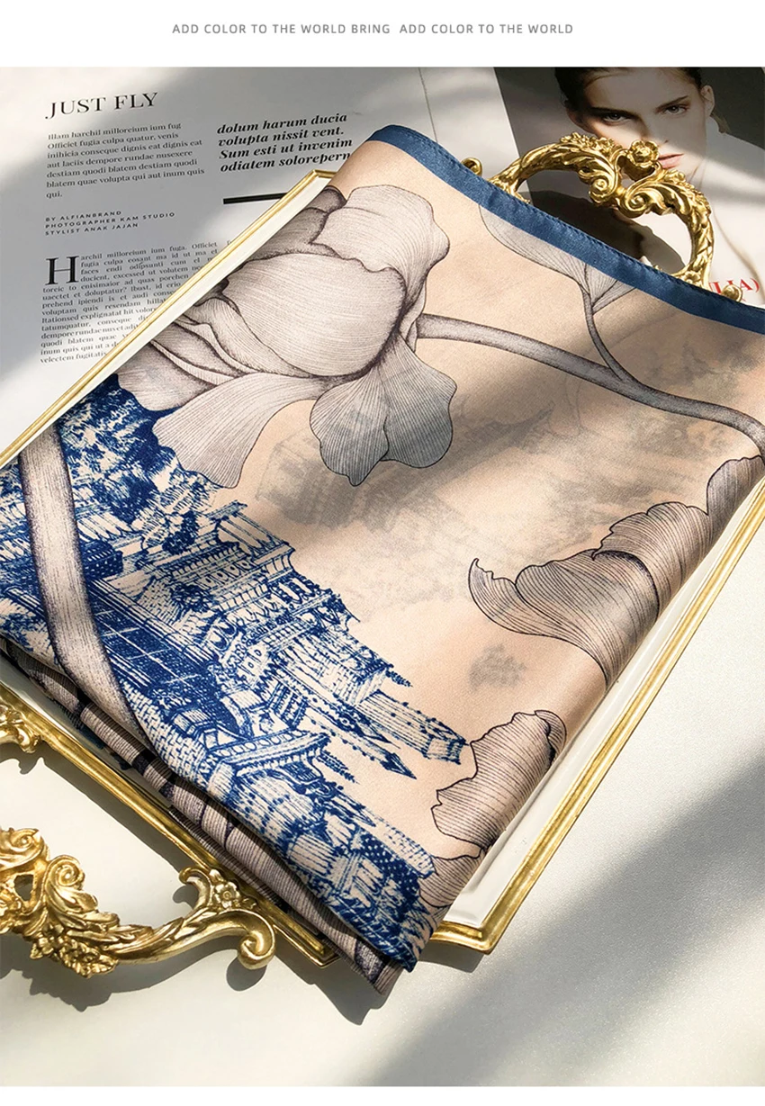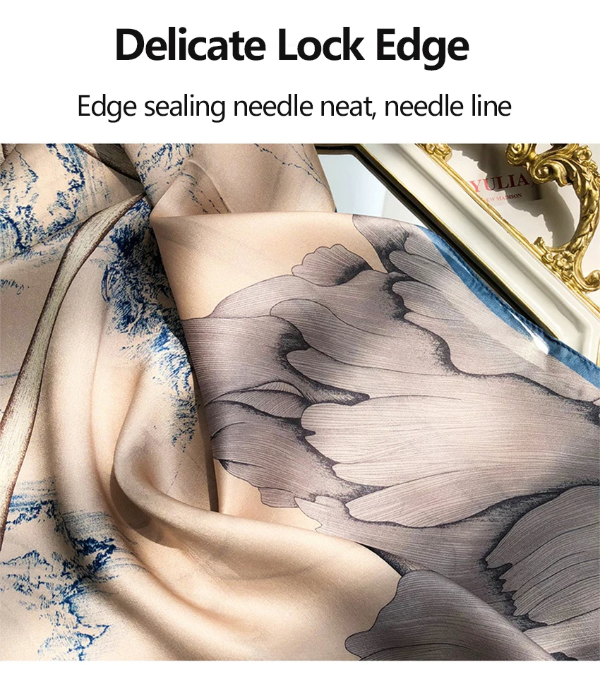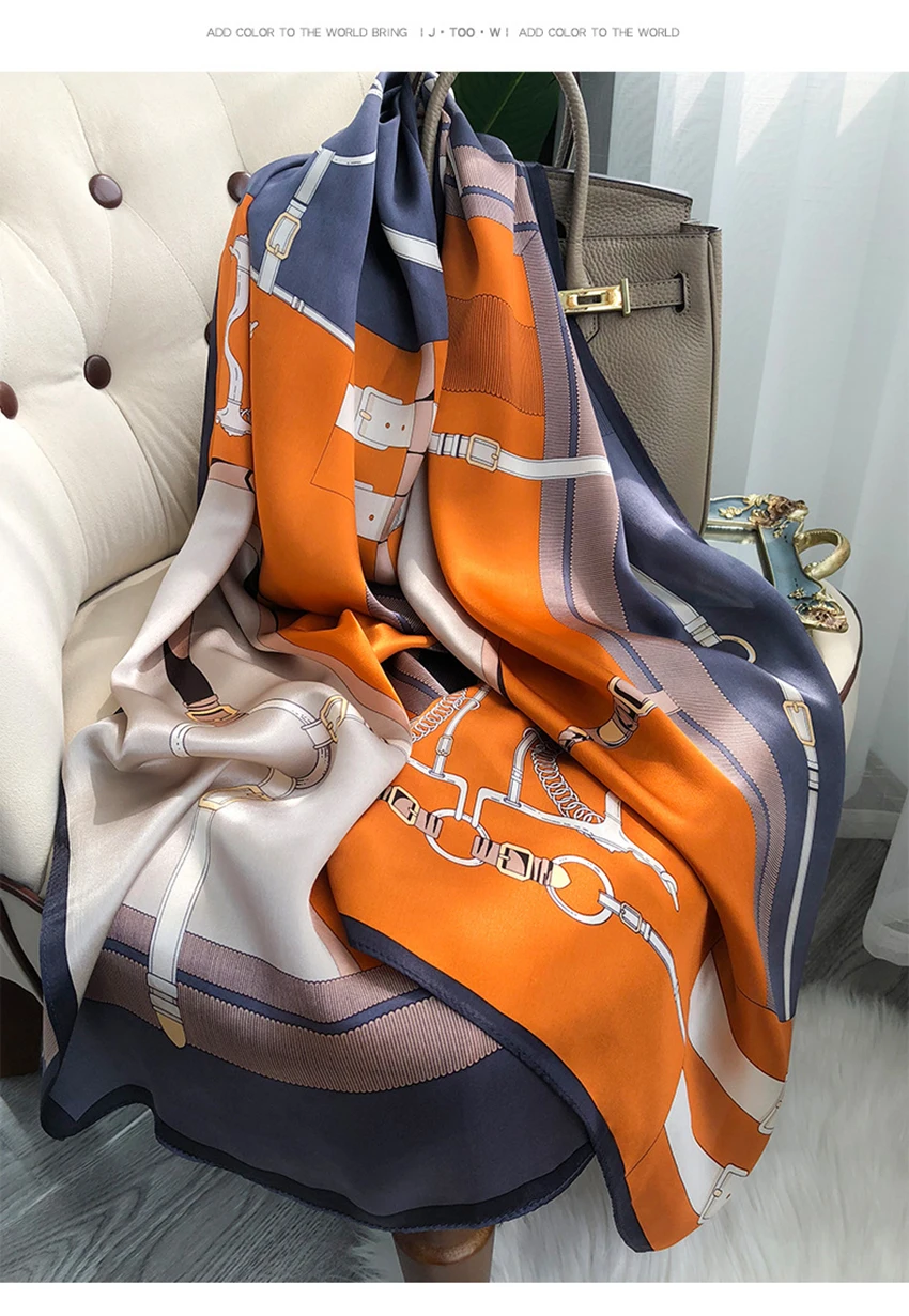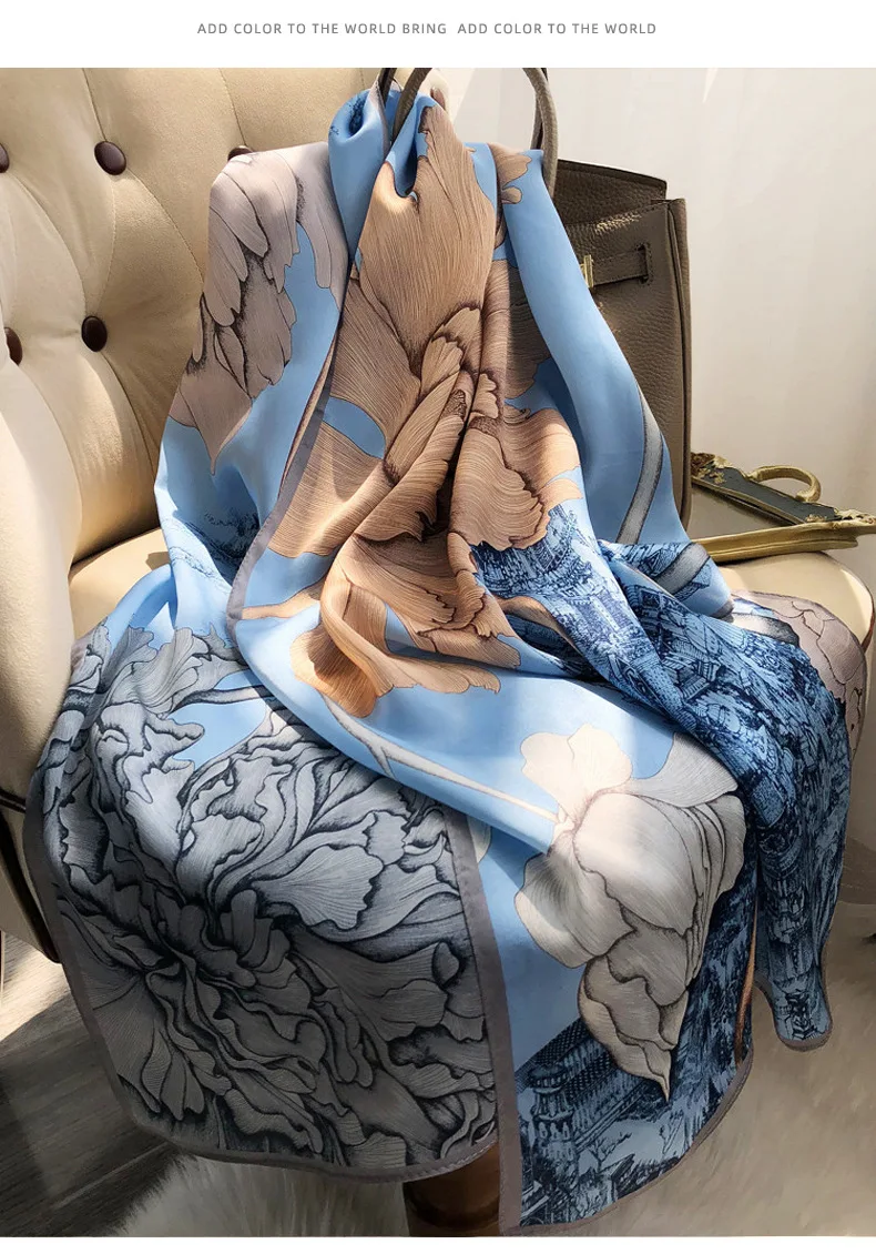 شالات نسائية من الحرير الخالص، مطبوع، تصميم فاخر، طويل الحجم