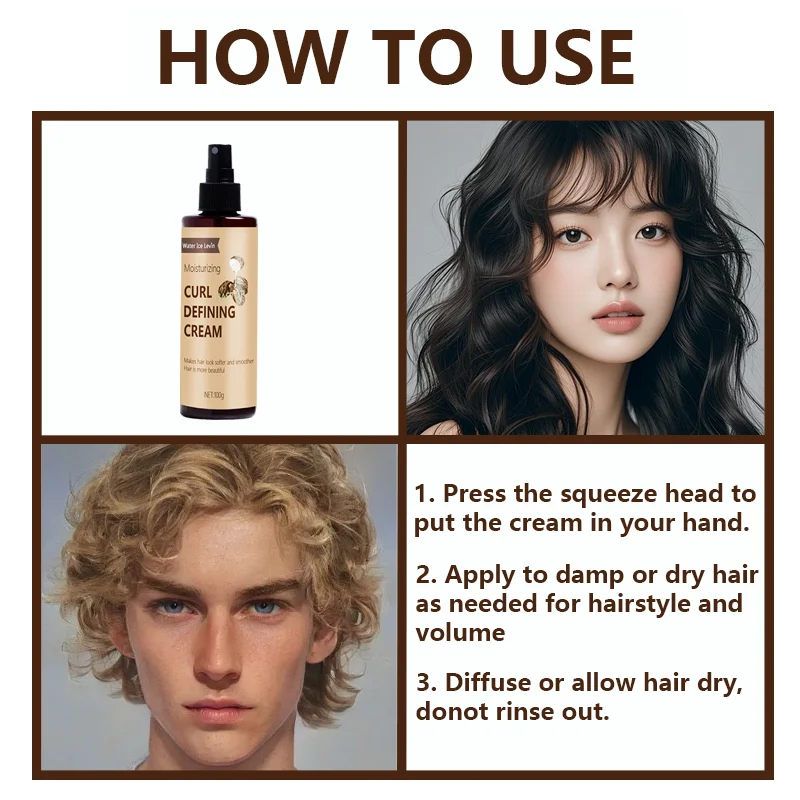 التركيبة المرطبة تحافظ على نعومة التجاعيد وتحديدها، وتقلل التجعد وتعزز لمعان الشعر.