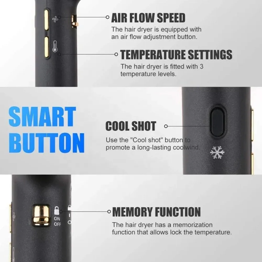 تجفيف سريع: يجفف الشعر بسرعة عالية، موفرًا الوقت والمجهود مع نتائج احترافية في كل مرة.